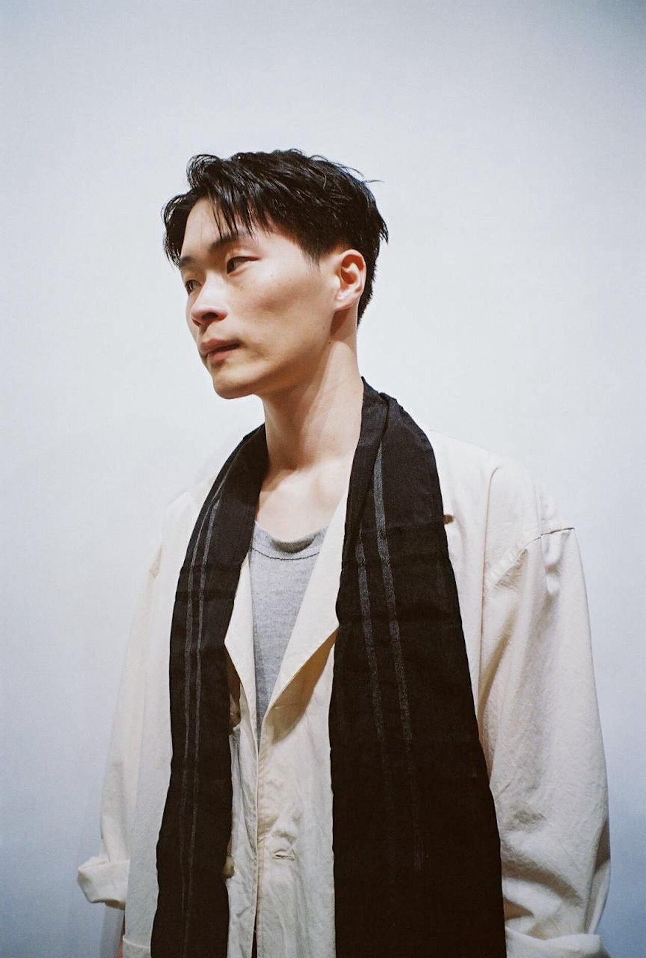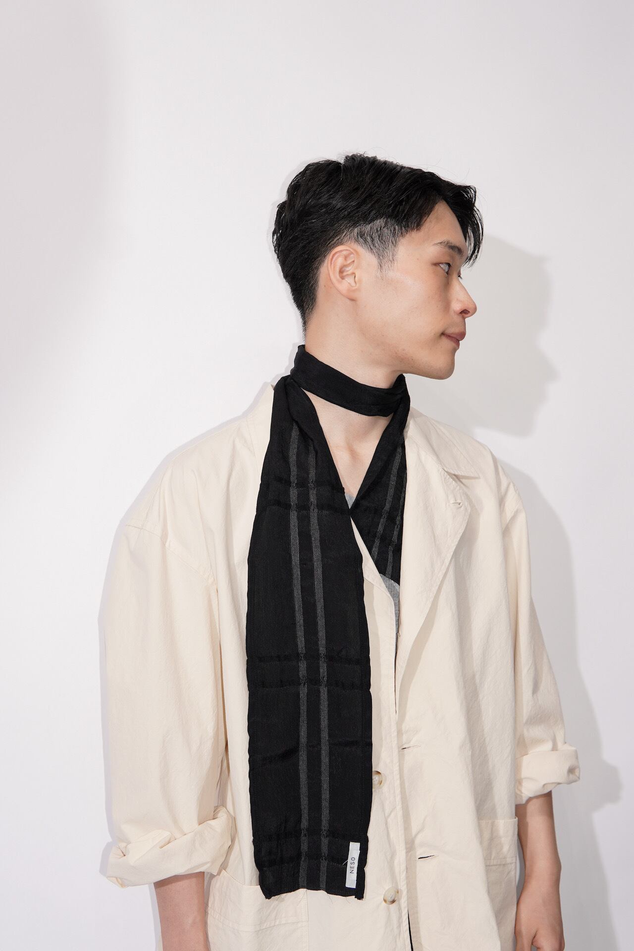 " SUPER LIGHT SILK NARROW STOLE / DARK NIGHT WINDOW "
