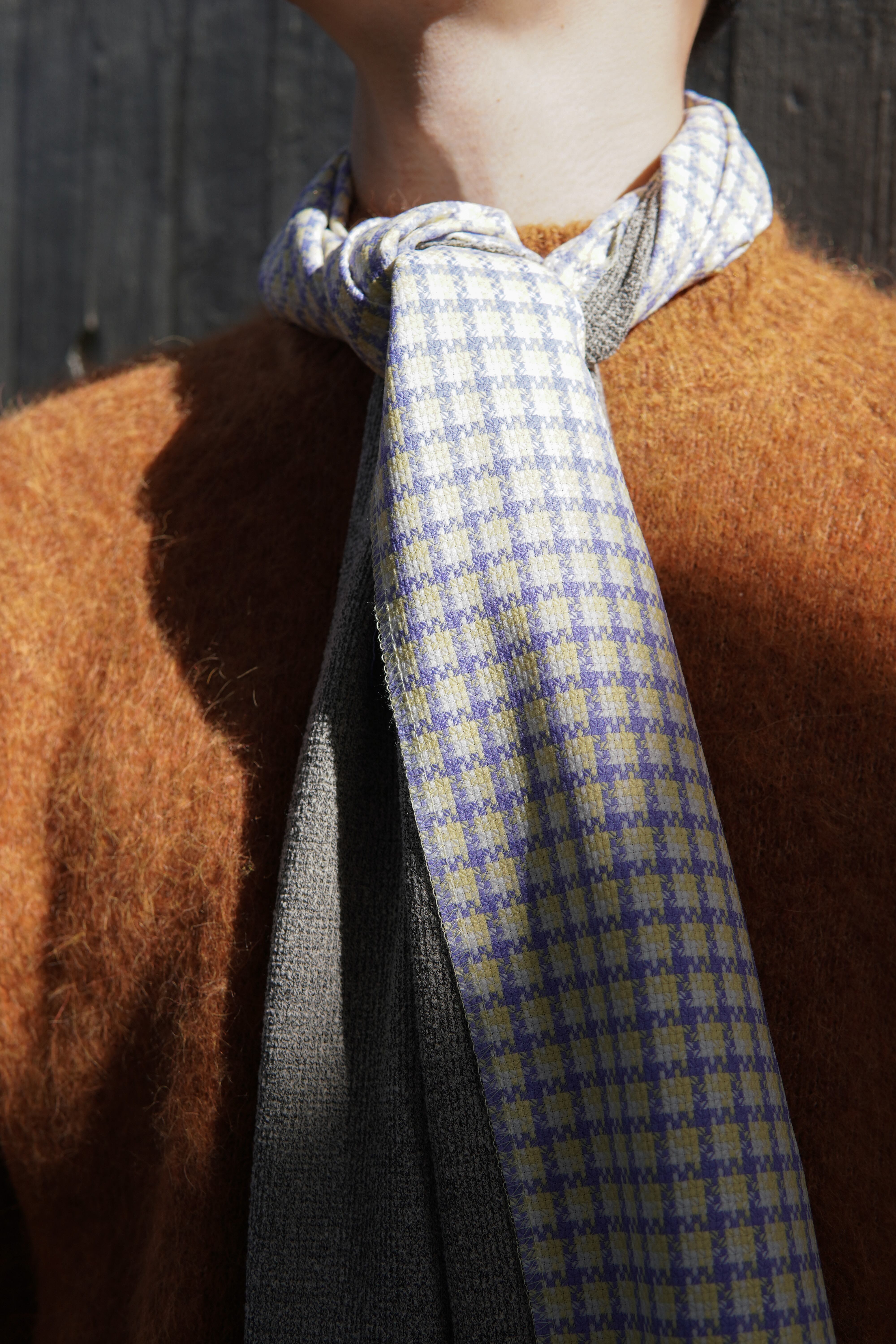 イエローとブルーの綺麗な色目が特徴のハウンズトゥース柄の